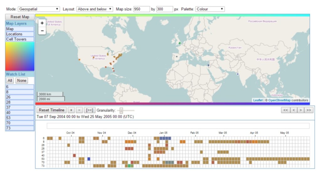 - Patterns of Life Visualisation (Phase 1 – 2014, £90K, Phase 2 – 2014-2015, £120k)The project designs, implements, and evaluates new Visual Analytic tool for Pattern-of-Life analysis, which tries to understand and predict movement patterns of individuals or small groups.